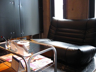 左の写真がカウンセリング&待合スペースです。この場所でお客さまのイメージを引き出しタトゥーのイメージを固めていく重要な場所です。ソファーは座ってみると分かりますが、微妙に低いです(笑)