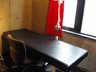 右の写真が施術スペースです。この場所でお客さま1人1人の思いを込めたタトゥーを彫っていきます。様々なドラマが生まれる場所でもあります。施術中はカーテンを閉きりプライベートな空間になりますのでご安心を◎
