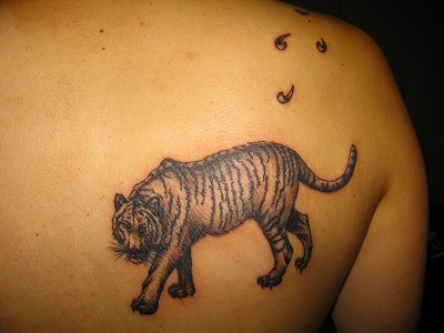 さてさて、今日は菊の裏側に位置する肩甲骨下あたりに虎さんです。