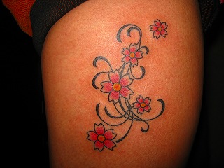 桜がメインモチーフなので、その周りをしつこくならないようにラインワークで添え、女性にぴったりな可愛らしいTATTOOが完成しました☆