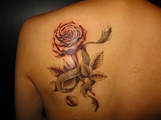 数回に分けた施術の為、最終仕上げの薔薇がまだ真新しいが、カサブタが取れ肌が安定したら綺麗で儚いTATTOOがお客様の肌に存在するだろう。