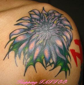薔薇や百合など、既存の花を得意とする祐さんが 今回手掛けたのは世界に1つしかない珍しい花です 図鑑を探してもその花は見つかりません 何故かって? それもそのはず。 今回ご紹介の花は、祐さんが脳内で生み出した この世に存在しない花だからです 元々入っているTATTOOの雰囲気を壊さず でもゴージャスにとの事で デザイン段階からかなり四苦八苦していた祐さん。 コチラが元々のTATTOO↓