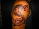胴体部分のダイナミックなボカシと、顔部分の繊細なボカシがコブラの力強さと鋭さを上手く表されたTATTOOとなって完成しました。