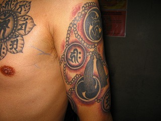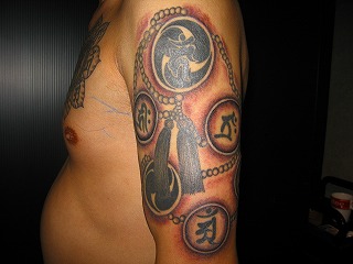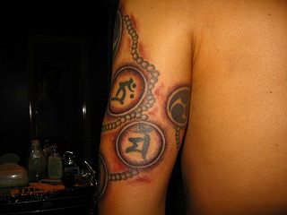 数珠の並びと背景のボカシで躍動感溢れるTATTOOに仕上がった今回の作品ですが、これだけ梵字やら数珠やらがあるとそれだけで圧巻ですね!